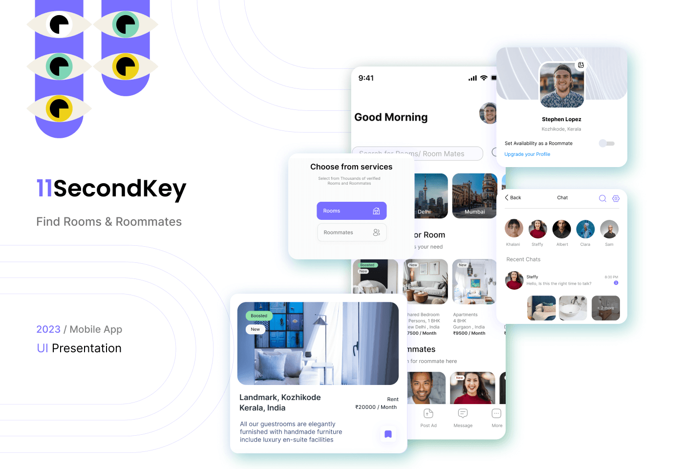 11Secondkey - Room Rental & Sharing App UI Designs